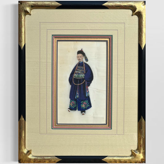 Set collections of eight Chinese 19th century depicting portraits of court men and ladies in rich garments on pith paper.